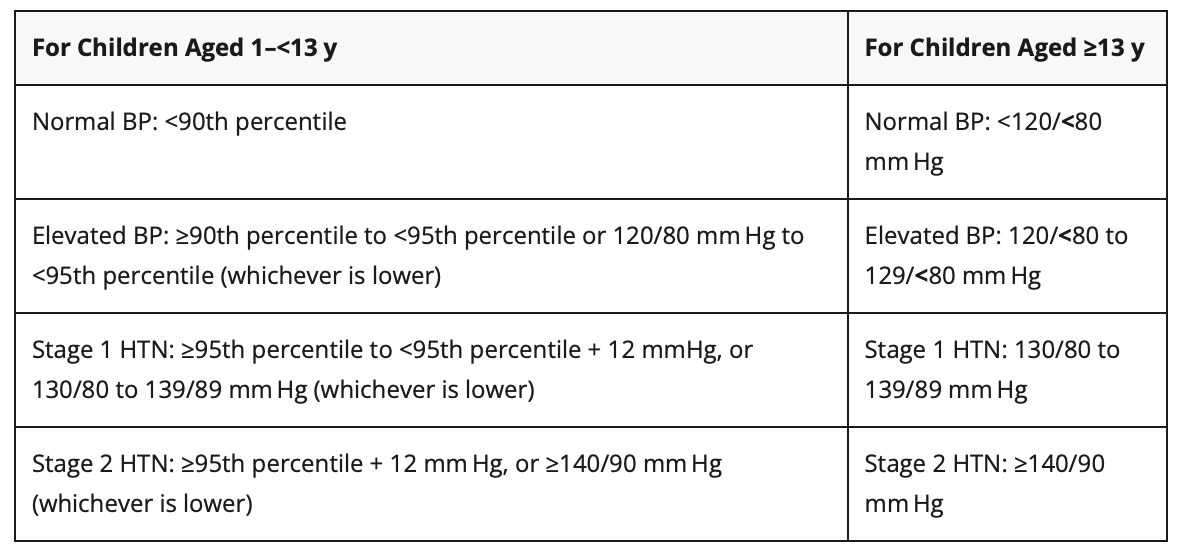 高血壓 兒童血壓依照年齡、性別及身高而有所不同。高血壓定義為收縮壓和/或舒張壓 ≥第 95 百分位(依年齡、性別及身高百分位表計算),並進一步分為第一期或第二期高血壓。